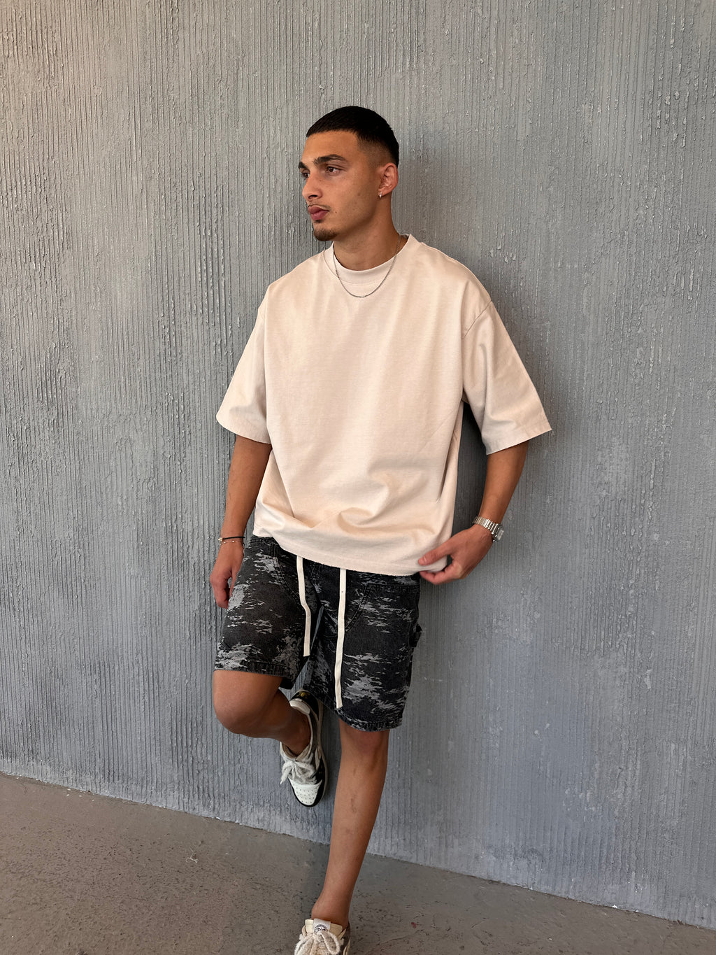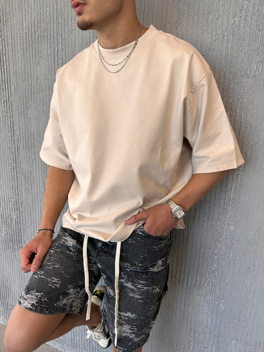 חולצת אוברסייז מבד עבה במיוחד יושב מדהים על הגוף בגזרה מפוצצת בצבע
